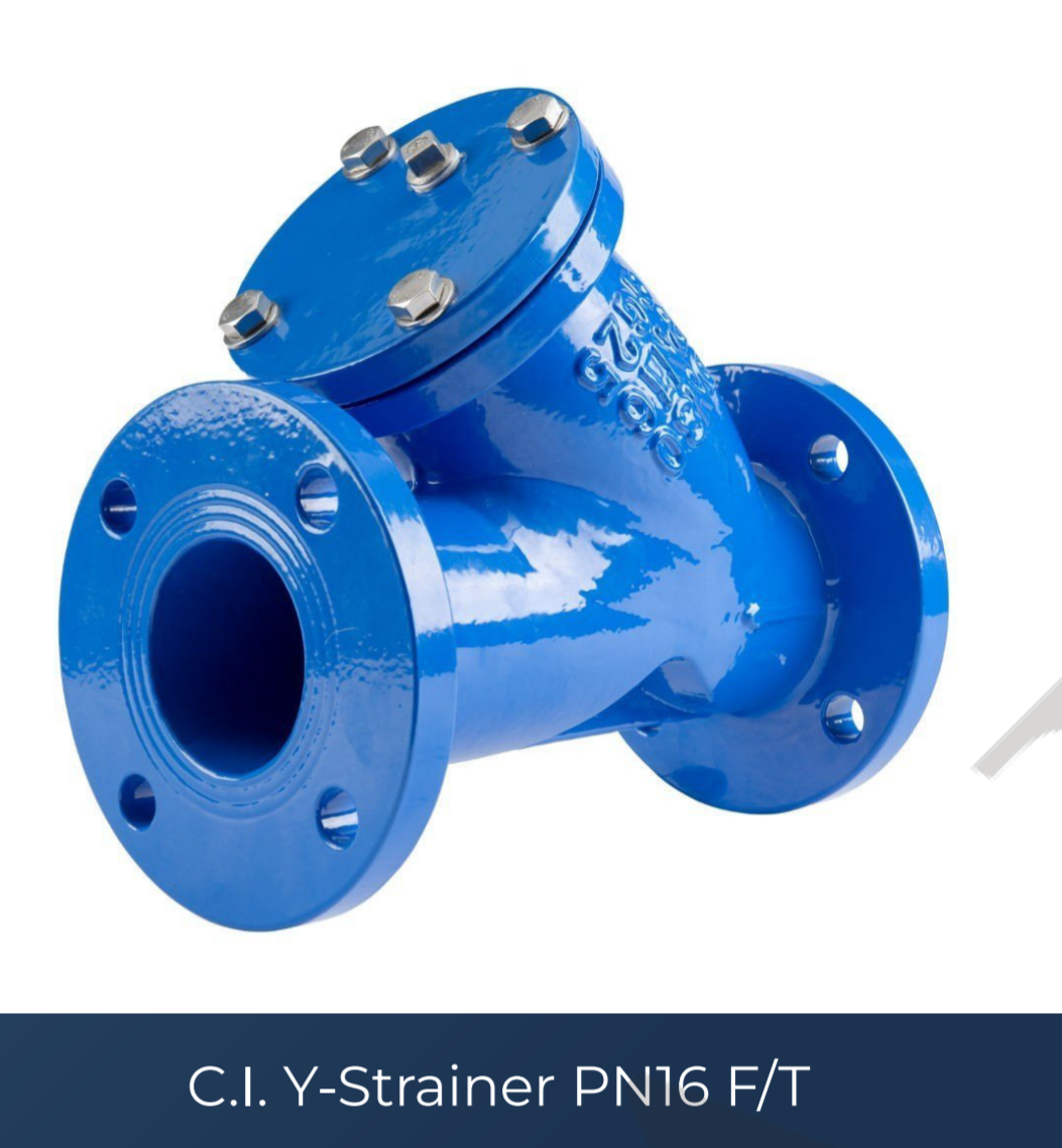 Cast iron Y-strainers rated at PN16 filter solids and debris from fluid pipelines. They help protect downstream equipment and maintain system efficiency.