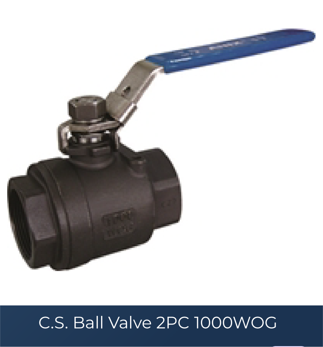 Carbon steel two-piece ball valves rated at 1000 WOG provide dependable flow control in industrial pipeline systems.