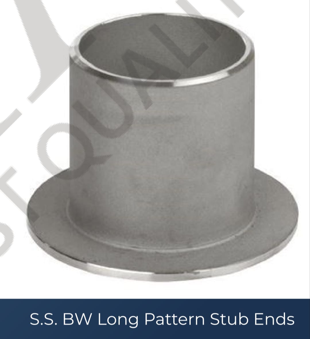 Long pattern stub ends provide extended pipe connections when used with lap joint flanges, ensuring proper alignment and flexibility in piping systems.
