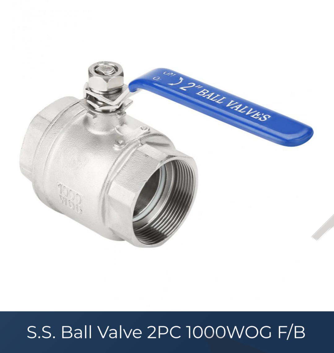Two-piece stainless steel ball valves rated at 1000 WOG provide reliable sealing and easy maintenance. Their full-bore design ensures smooth flow with minimal pressure drop.