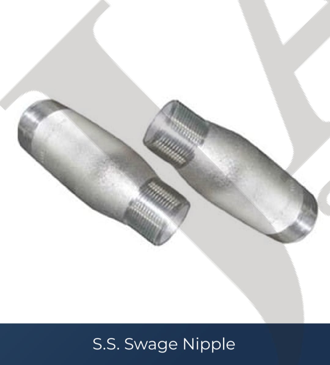 S.S. Swage Nipple is a forged fitting used to connect pipes of different diameters in industrial piping systems.