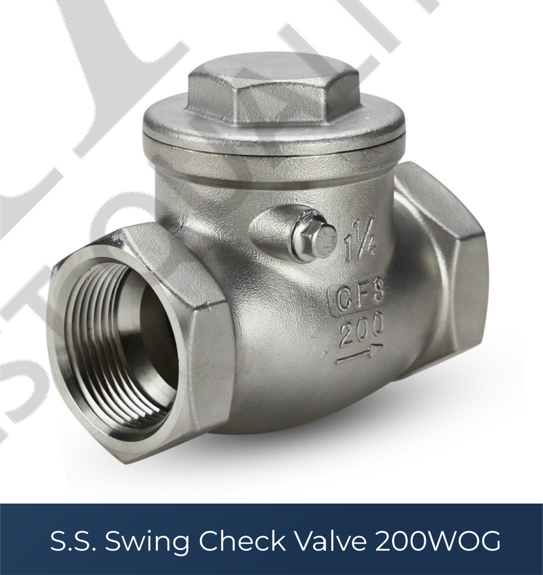 Stainless steel swing check valves rated at 200 WOG allow fluid to flow in one direction while preventing backflow. Their corrosion resistance makes them suitable for industrial and water systems.